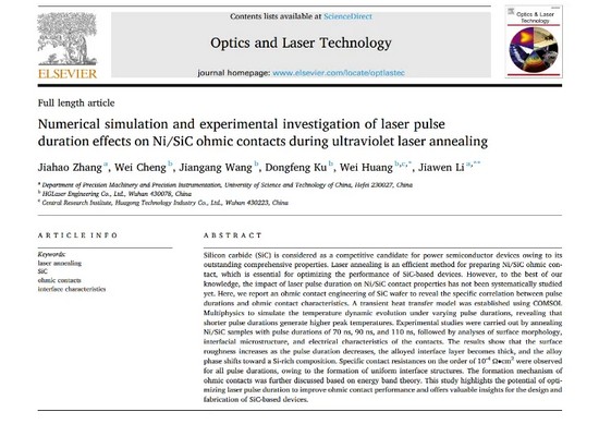 今年7月,团队最新研究成果登上国际权威期刊《Optics and Laser Technology》,系统阐述了不同激光参数下欧姆接触形成的热力学过程与界面反应机理,为精准调控激光在金属与晶体界面加工特性提供了理论模型和工艺窗口,解决了传统退火工艺中热扩散难以精确控制的行业难题。