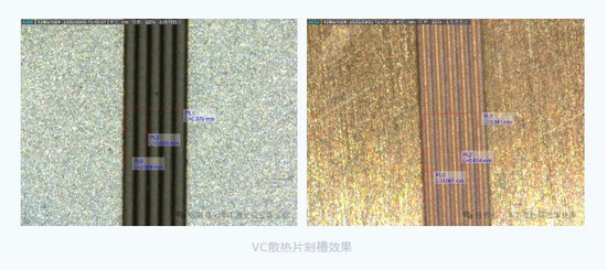 针对VC散热板,开发高精度激光刻槽工艺,实现U型槽道深度精确可控、槽形均匀一致,有效提升毛细亲水性能与回流效率,助力超薄均热板实现更高散热效能。