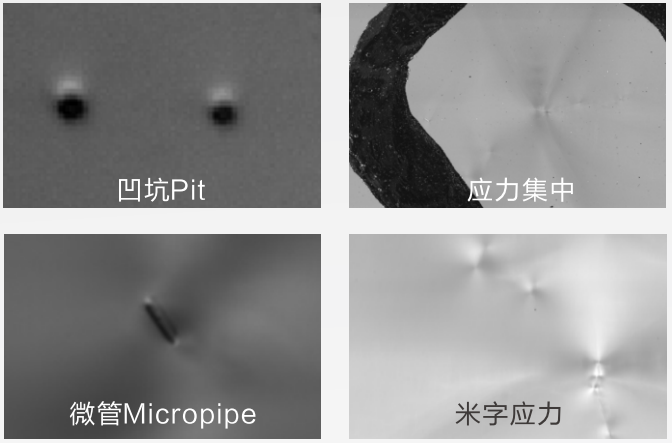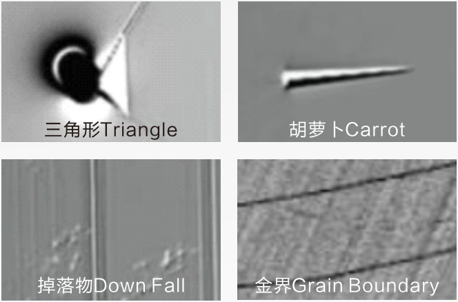 | 可检缺陷 | 衬底缺陷:凹坑、包裹物、崩边、层错、玷污、划痕、裂纹、微管、微粒 | |